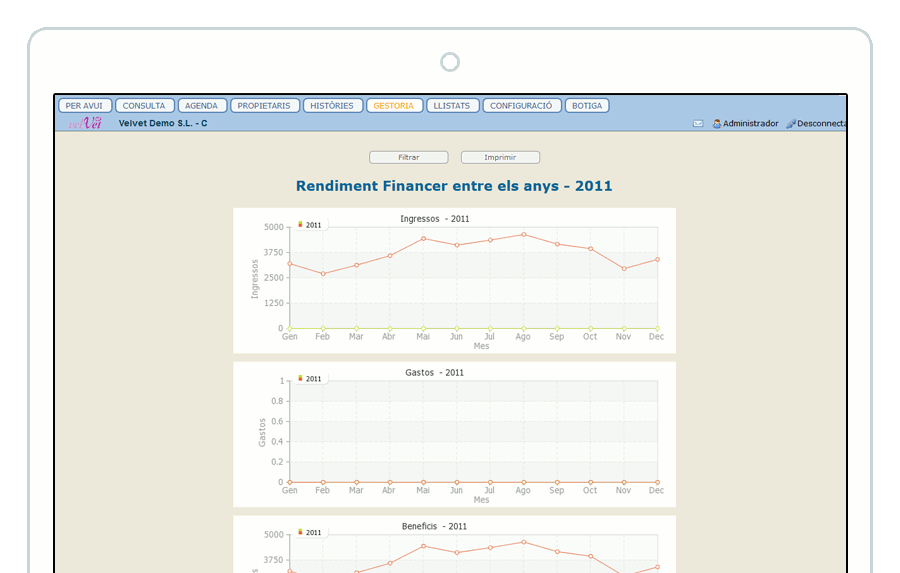Es el menú mediante el cual podemos extraer todo tipo de información relativa a la clínica: listados de mascotas, de propietarios, historias, impagados, agendas, próximas visitas y recalls entre otros. Esta herramienta facilita el trabajo administrativo de la clínica ya que permite automatizar los procesos como el envio de cartas, SMS u otros recordatorios.